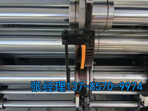 5、雙色水墨印刷開槽機(jī)傳動(dòng)系統(tǒng)采用無間隙配合確保套色精度,提高齒輪壽命,降低噪音。
